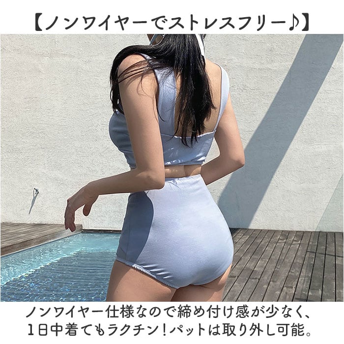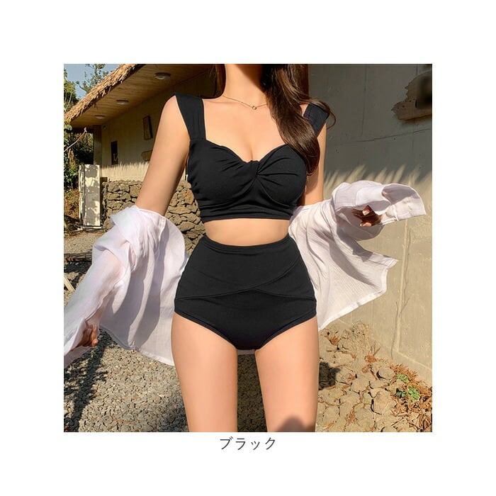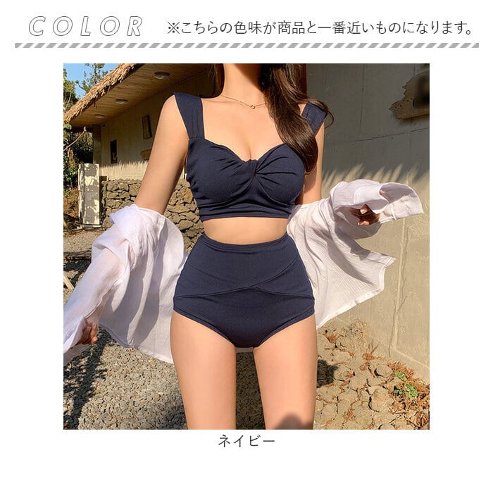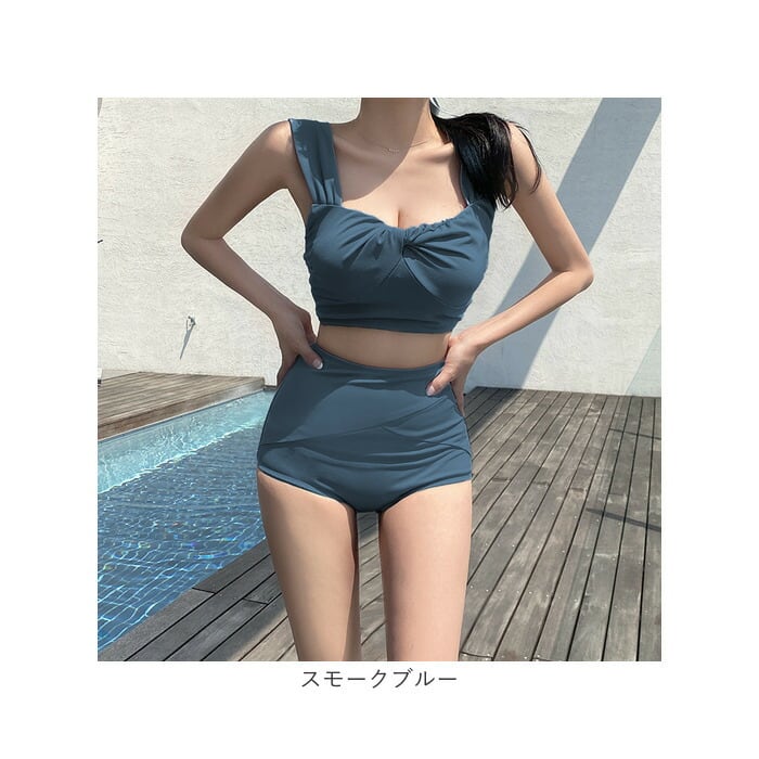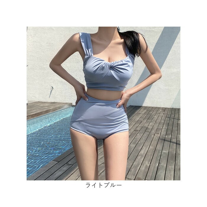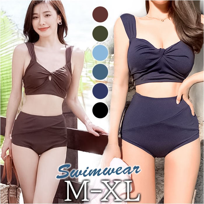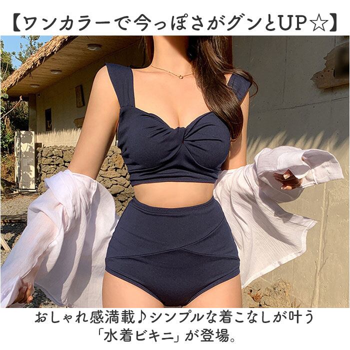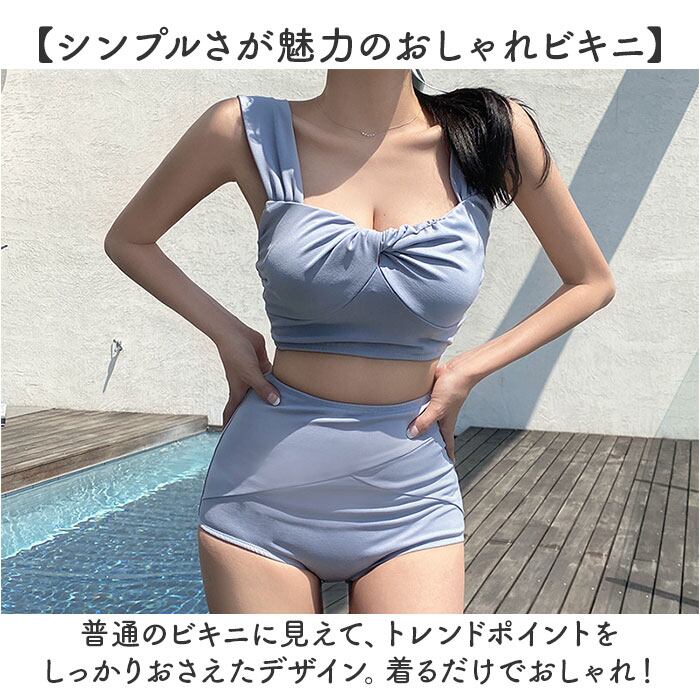 レディース 水着 ビキニ 通販 スイムウェア ショーツ セパレート ツイストブラ ノンワイヤー ストラップ太め ハイウエストショーツ パッド付き 無地 フロントツイスト かわいい おしゃれ オシャレ シンプル 海水浴 プール 海 温泉 バカンス