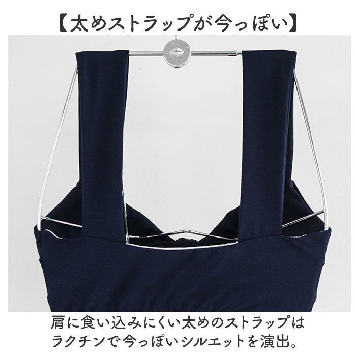 ・肩に食い込みにくい太めのストラップはラクチンで今っぽいシルエットを演出。