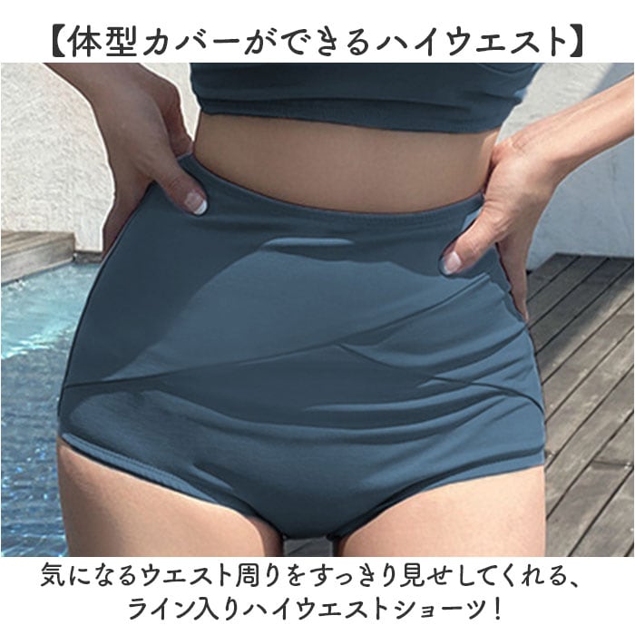 ・気になるウエスト周りをすっきり見せしてくれる、ライン入りハイウエストショーツ!