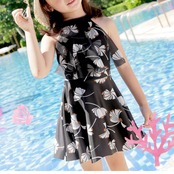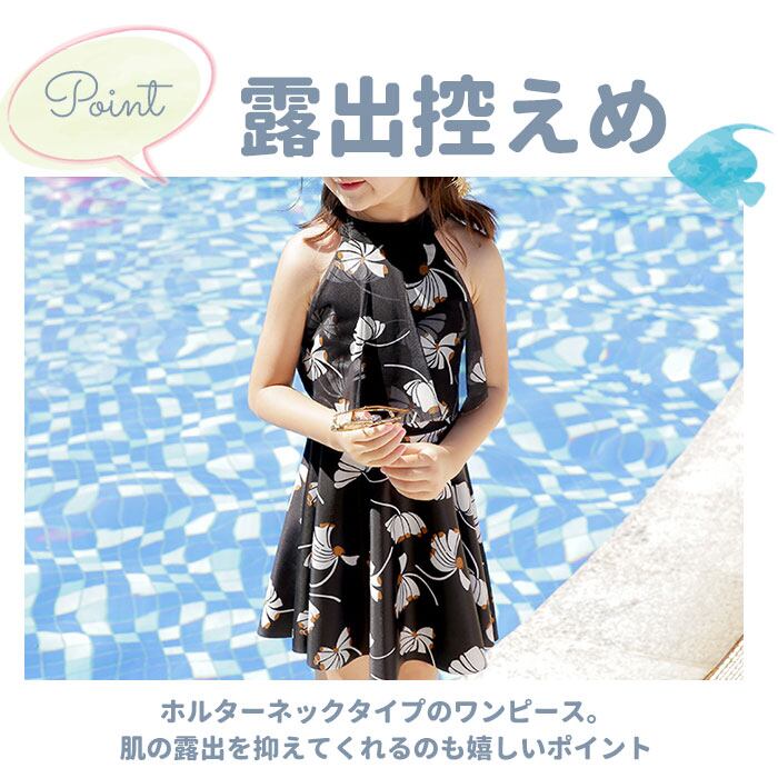 ・ホルターネックタイプのワンピース。肌の露出を抑えてくれるのも嬉しいポイント。