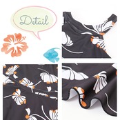 ・バッククロスと前面のフリルがとってもキュートなデザイン♪レトロなプリント柄が大人っぽさを演出。