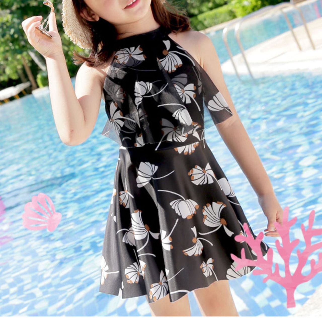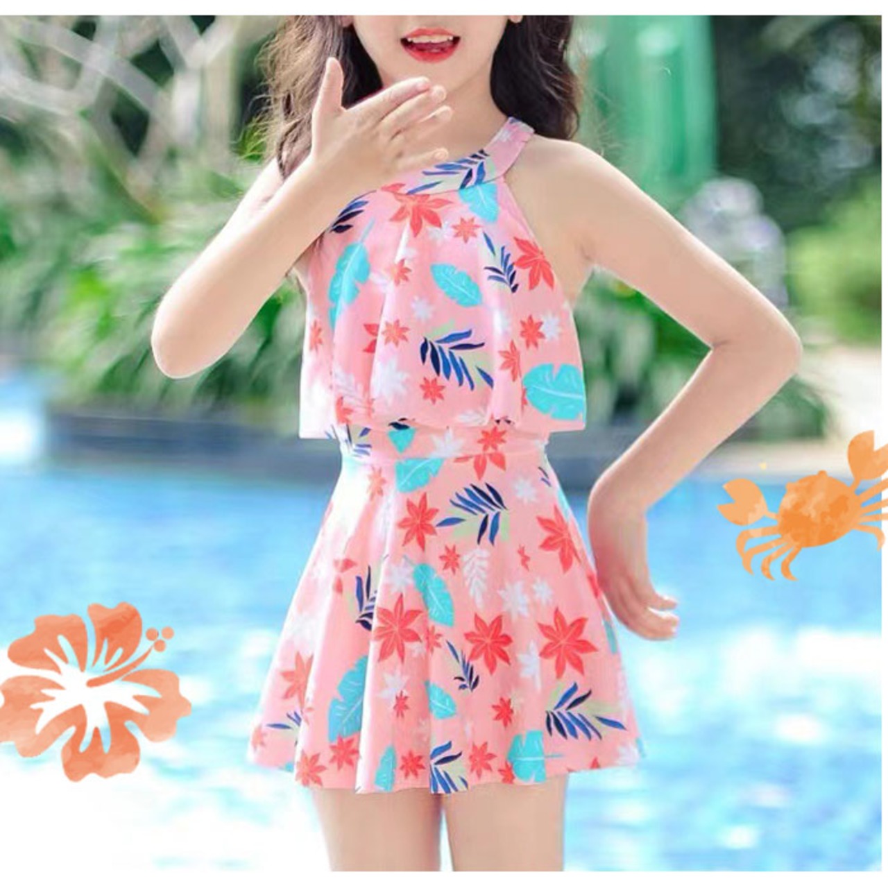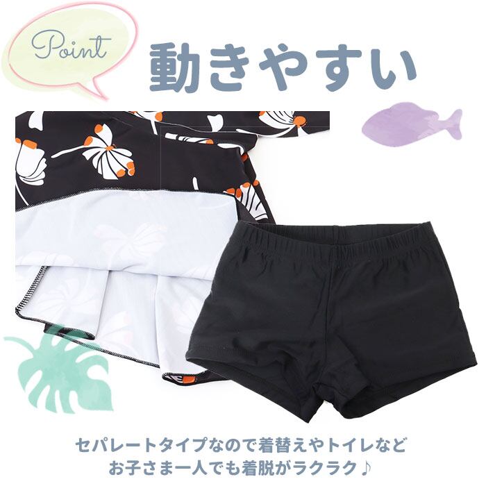 ・プールや川、海などの水遊びシーンにぴったりなキッズ水着上下セットが登場。