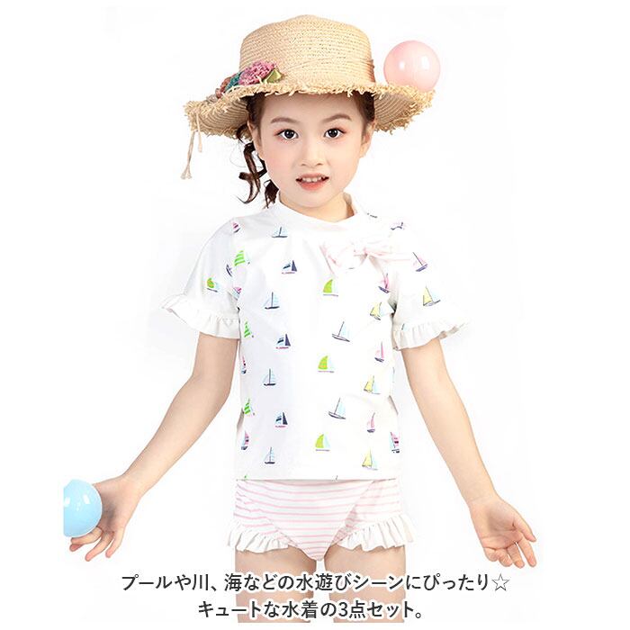 ・プールや川、海などの水遊びシーンにぴったり☆キュートな水着の3点セット。
