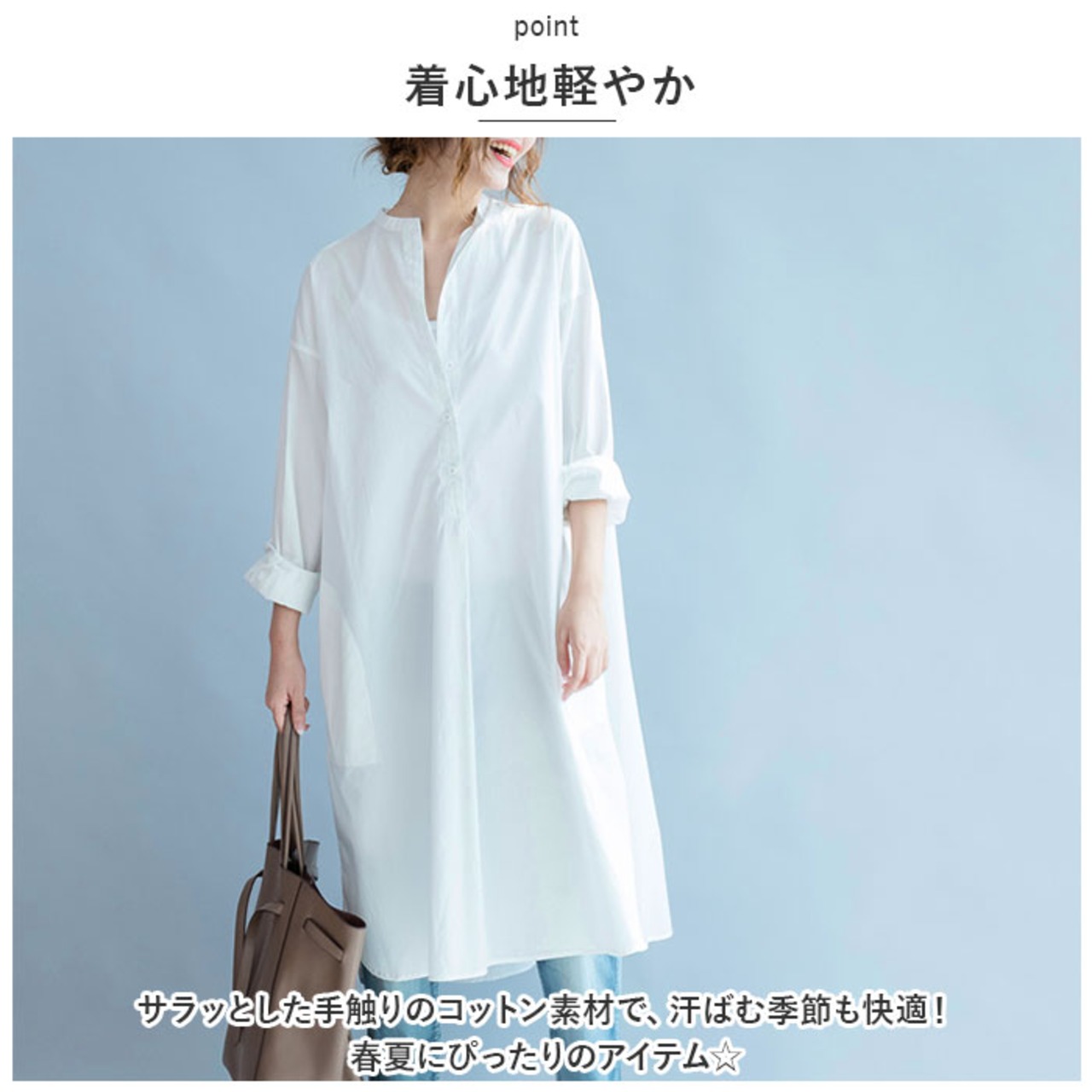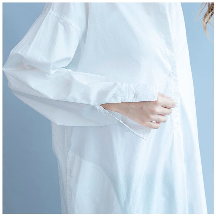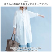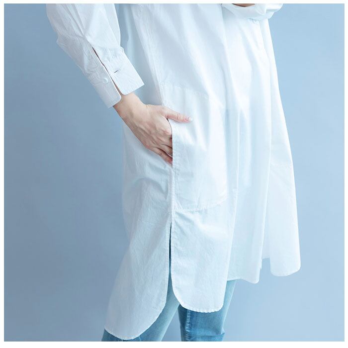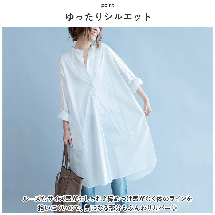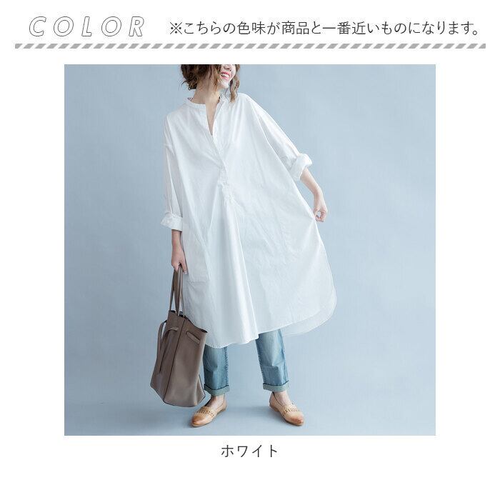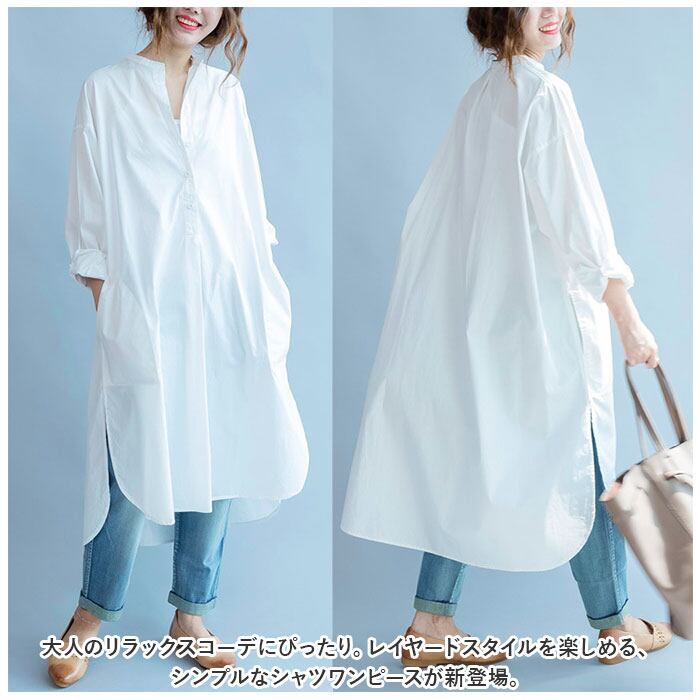 シャツワンピース 長袖 通販 シャツワンピ レディース ワンピース シャツ 長袖シャツ スタンドカラー ロングシャツ カジュアル ナチュラル 綿 コットン 無地 シンプル 春 夏 春夏 バンドカラー チュニック ブラウス トップス レディースファッション