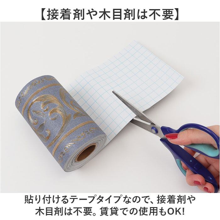 ・貼り付けるテープタイプなので、接着剤や木目剤は不要。賃貸での使用もOK!