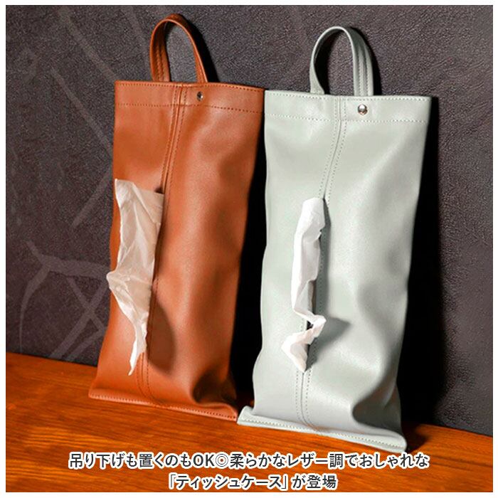 ・吊り下げも置くのもOK◎柔らかなレザー調でおしゃれな「ティッシュケース」が登場