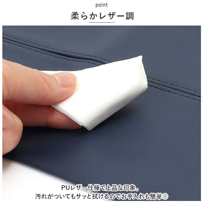 ・お部屋や車内など、どこでも馴染むシンプルなデザイン。レザー調なので高見えし、生活感が出ないのも嬉しいポイント。
