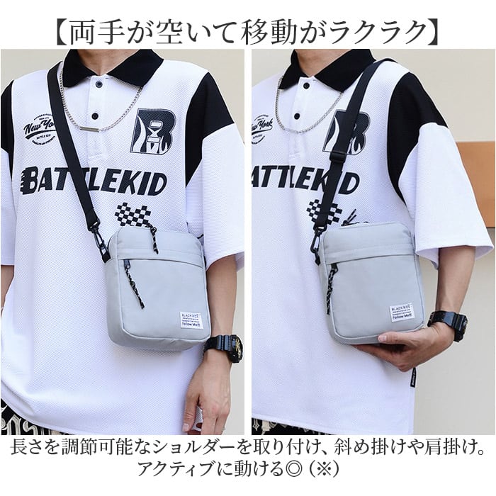 ・長さを調節可能なショルダーを取り付け、斜め掛けや肩掛け。アクティブに動ける◎