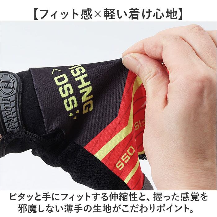 ・ピタッと手にフィットする伸縮性と、握った感覚を邪魔しない薄手の生地がこだわりポイント。