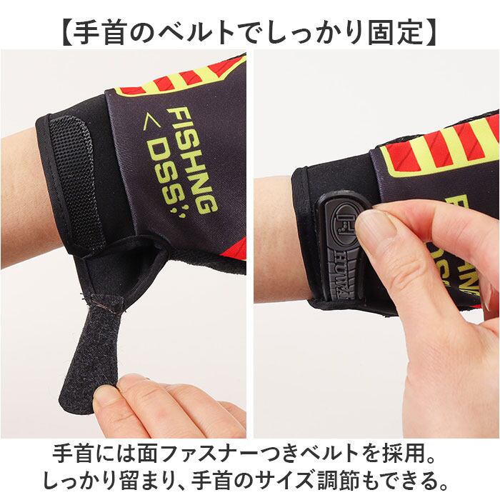・手首には面ファスナーつきベルトを採用。しっかり留まり、手首のサイズ調節もできる。