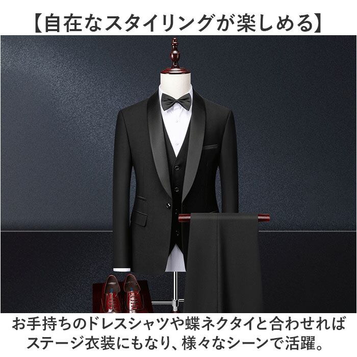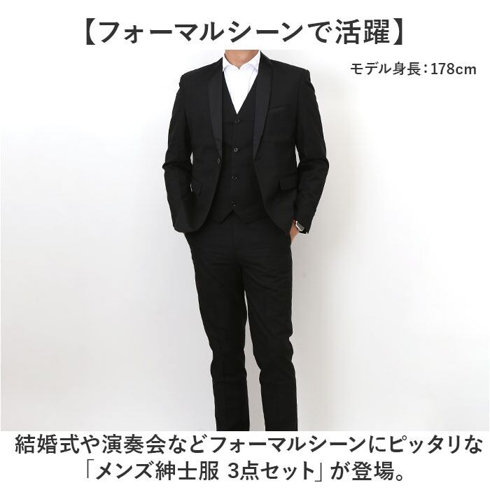 ・結婚式や演奏会などフォーマルシーンにピッタリな「メンズ紳士服 3点セット」が登場。