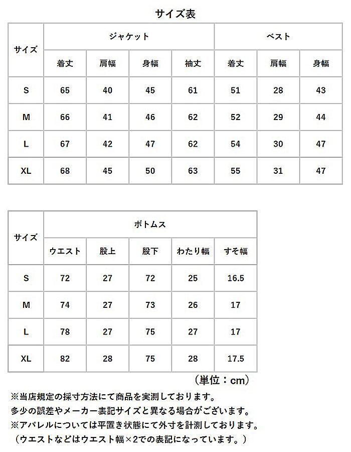 ・ジャケット、ベスト、パンツの3点セット。体に程よくフィットしてシルエットもきれい。