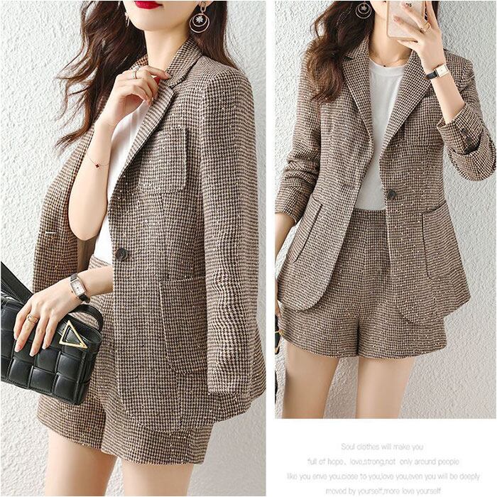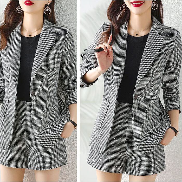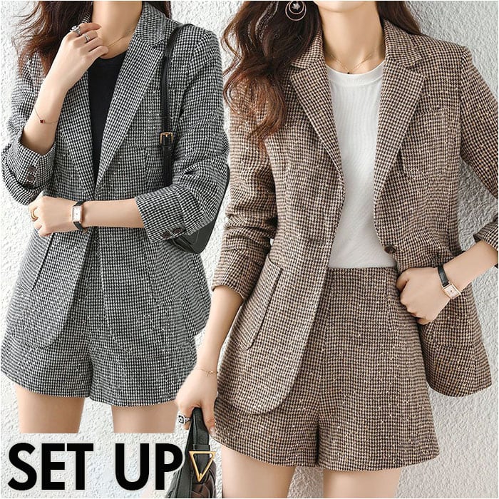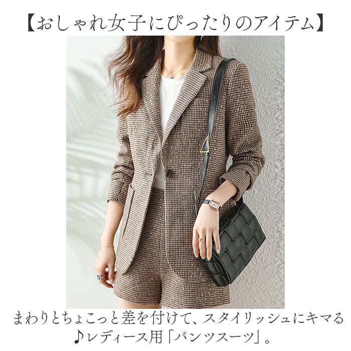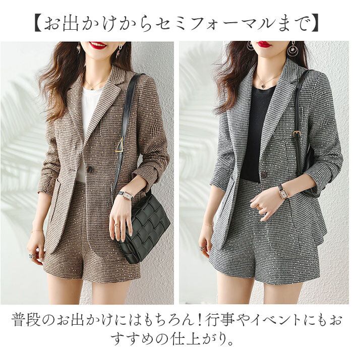 ジャケット ショートパンツ セットアップ 通販 パンツスーツ 上下セット キュロットスーツ レディース ショート丈 カジュアル グレンチェック 千鳥格子 セレモニースーツ ビジネススーツ ビジネスカジュアル ビジカジ 通勤 春 秋 冬 レディースファッション