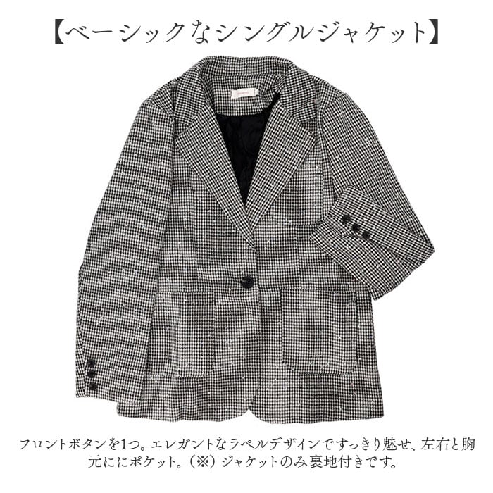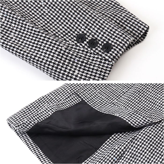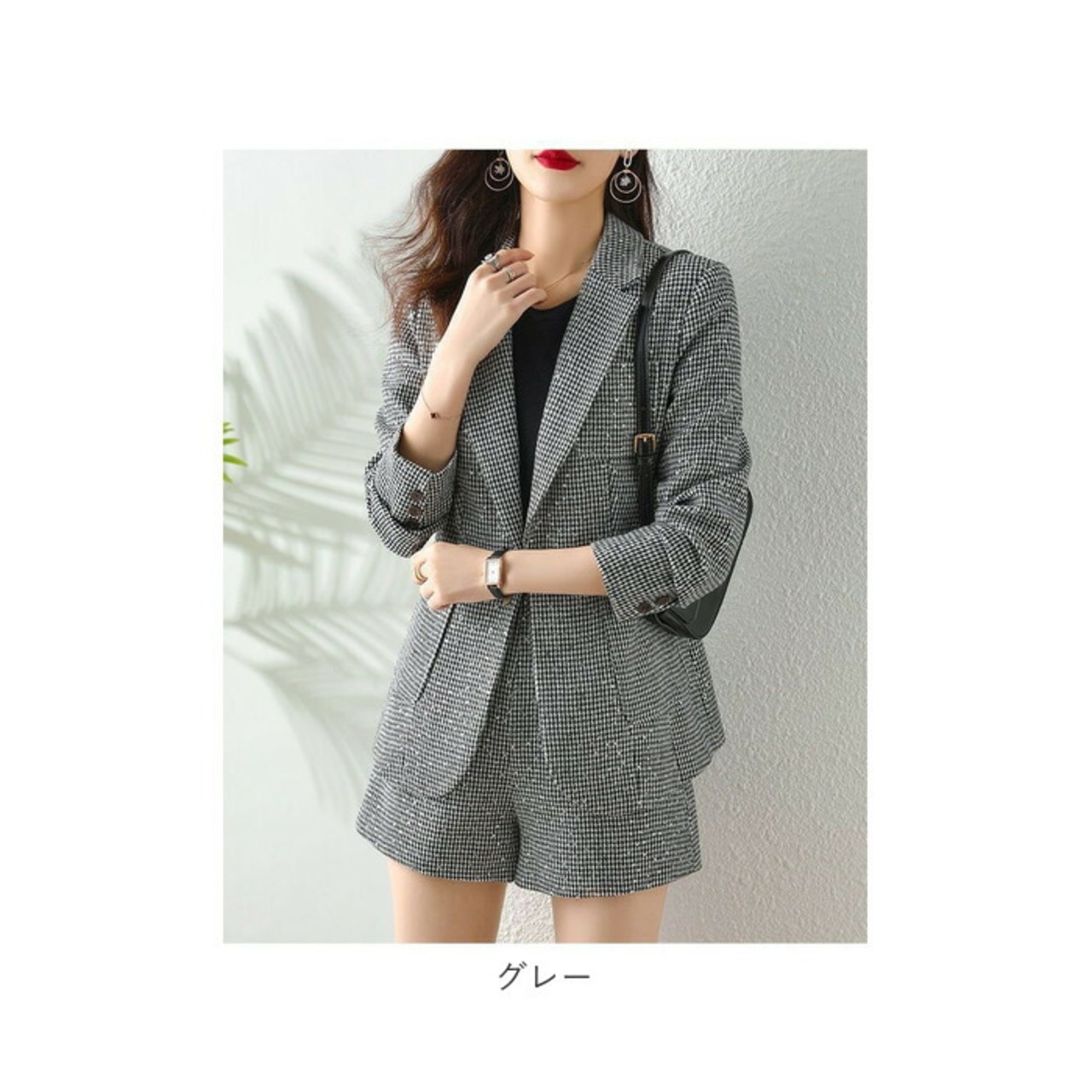 ・きちんと感のあるジャケット&ショートパンツ。千鳥格子にキラッとスパンコールをON☆