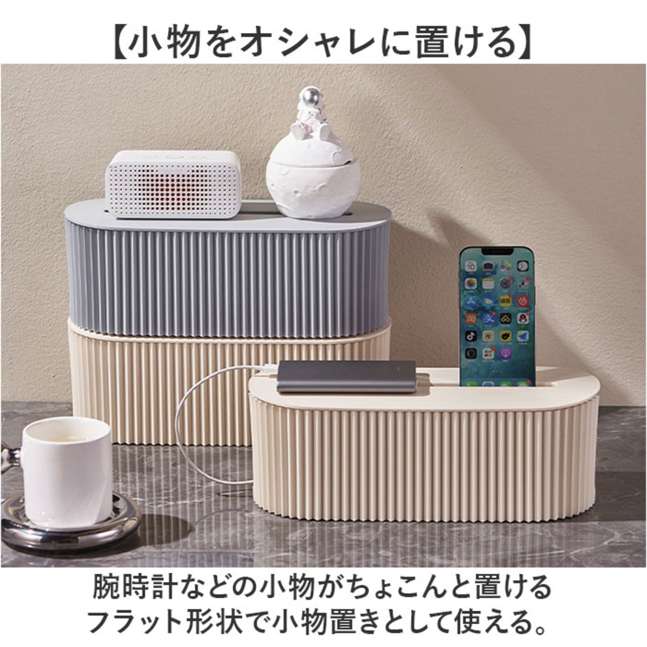 ・腕時計などの小物がちょこんと置けるフラット形状で小物置きとして使える。