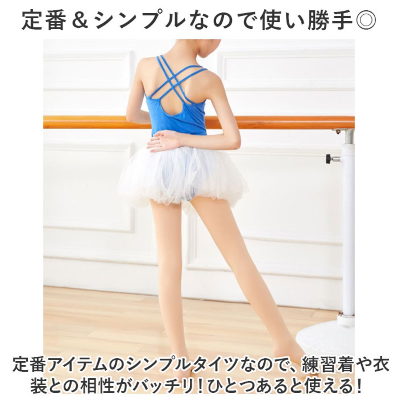 ・定番アイテムのシンプルタイツなので、練習着や衣装との相性がバッチリ!ひとつあると使える!