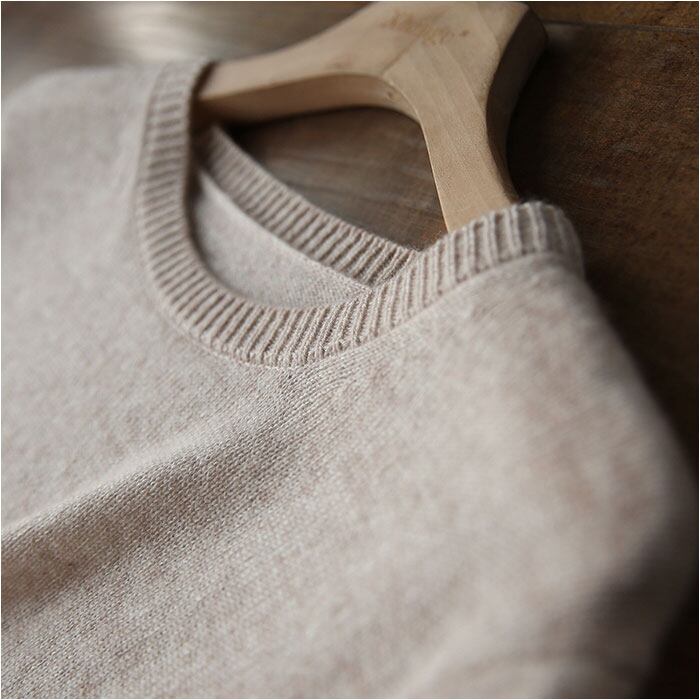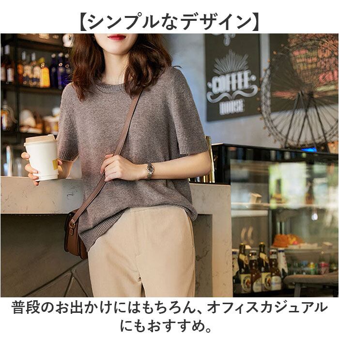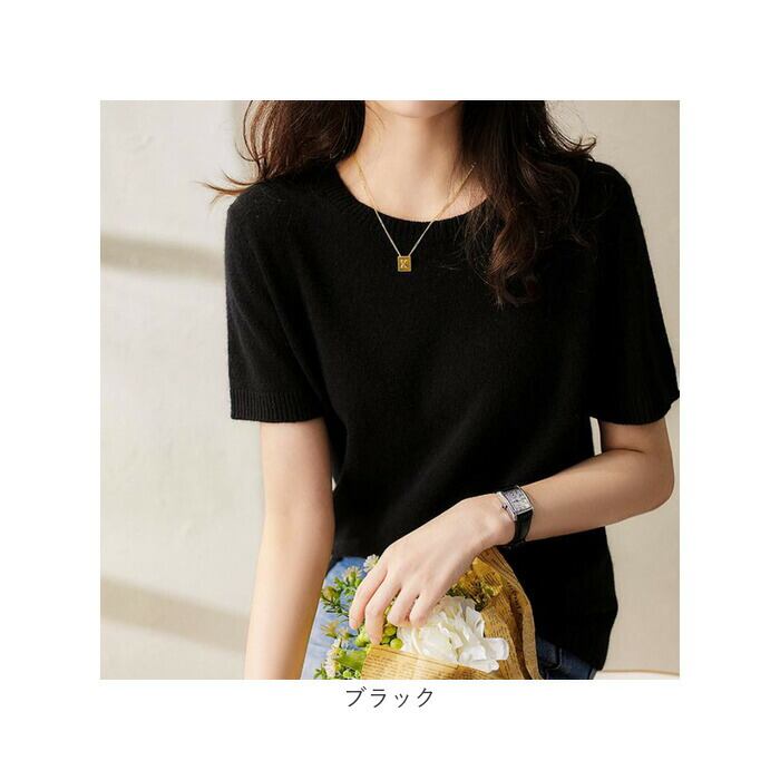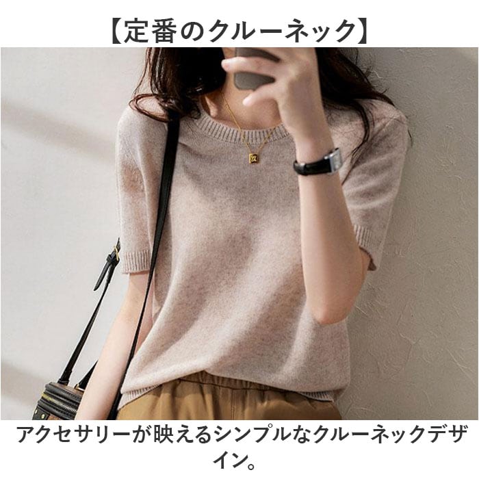 ・アクセサリーが映えるシンプルなクルーネックデザイン。