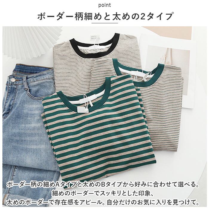 ・ボーダー柄の細めAタイプと太めのBタイプから好みに合わせて選べる。細めのボーダーでスッキリとした印象、太めのボーダーで存在感をアピール。自分だけのお気に入りを見つけて。