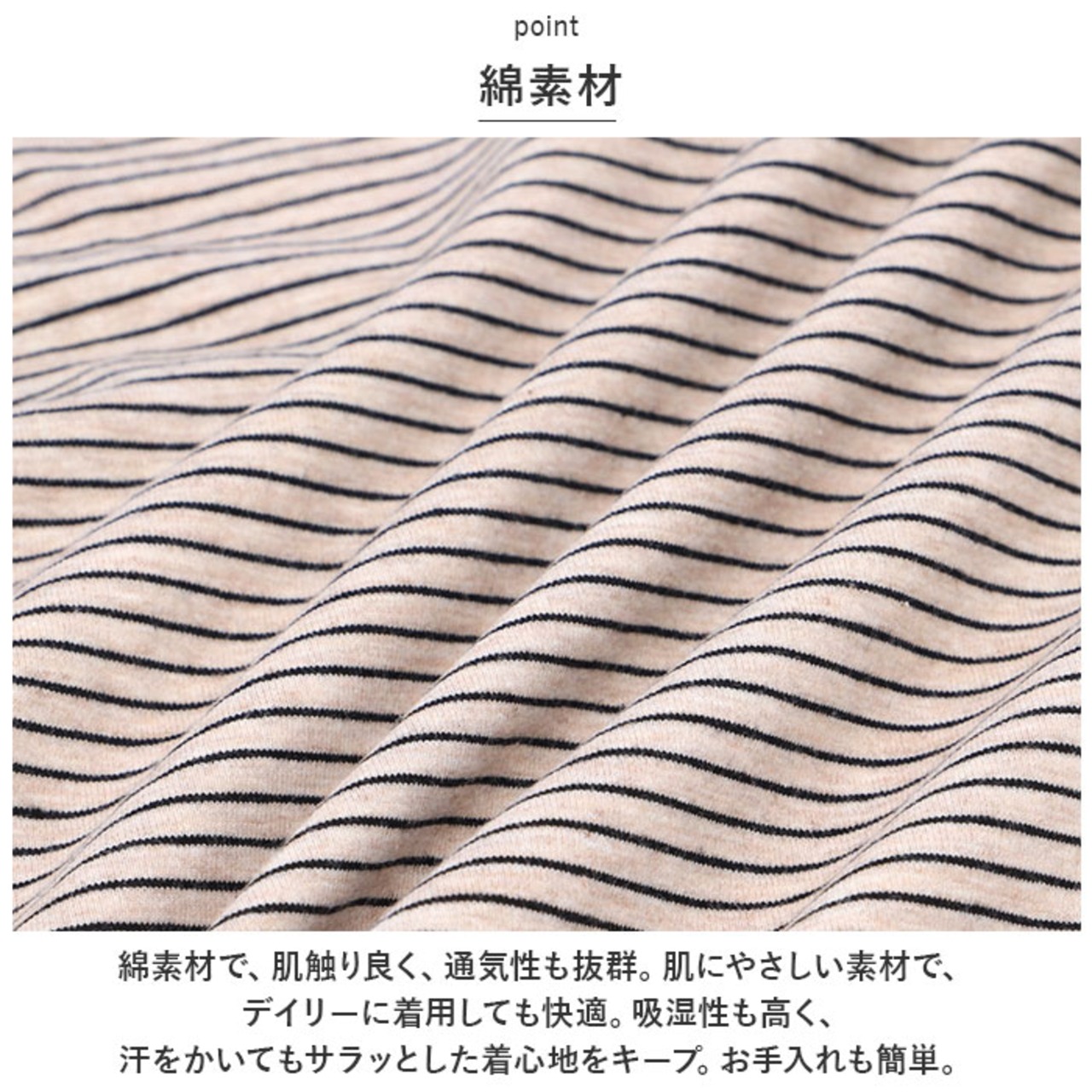・綿素材で、肌触り良く、通気性も抜群。肌にやさしい素材で、デイリーに着用しても快適。吸湿性も高く、汗をかいてもサラッとした着心地をキープ。お手入れも簡単。