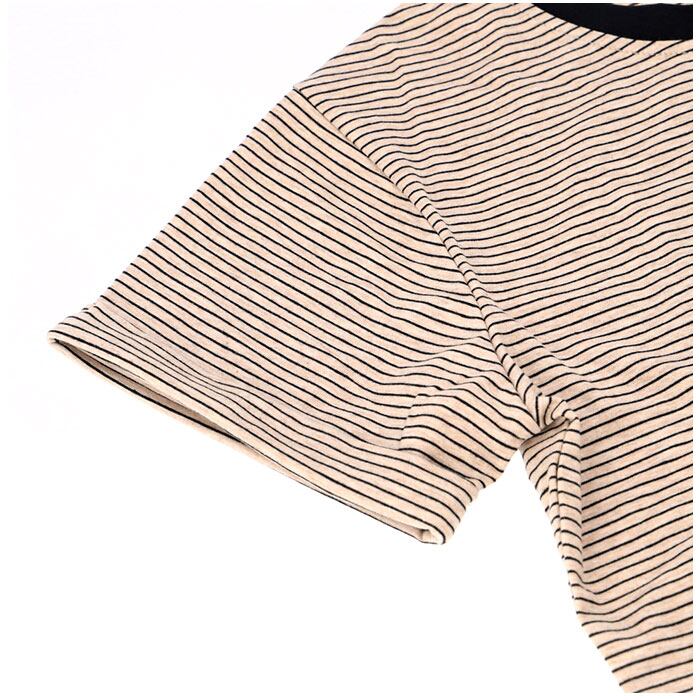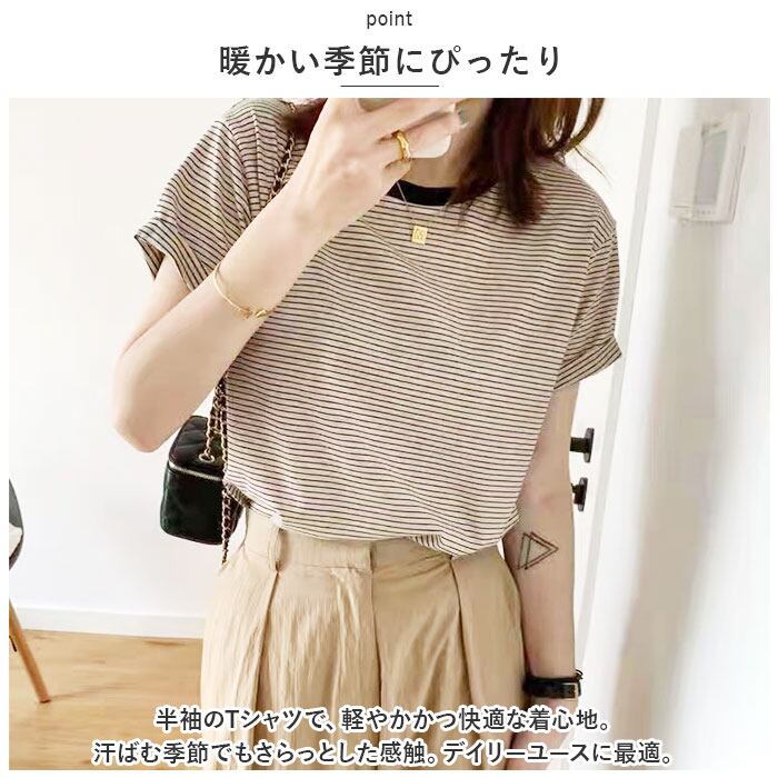 ・半袖のTシャツで、軽やかかつ快適な着心地。汗ばむ季節でもさらっとした感触。デイリーユースに最適。