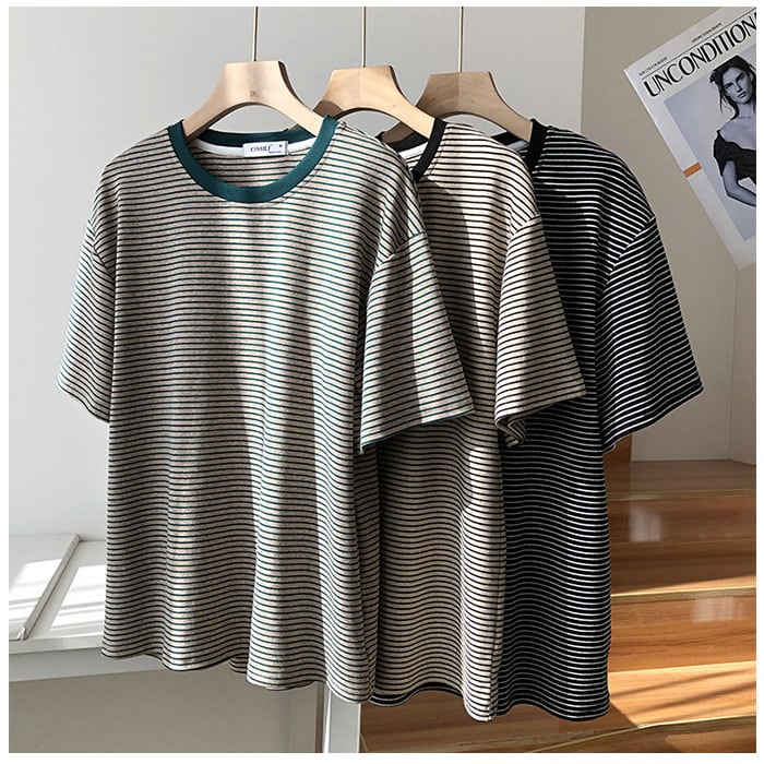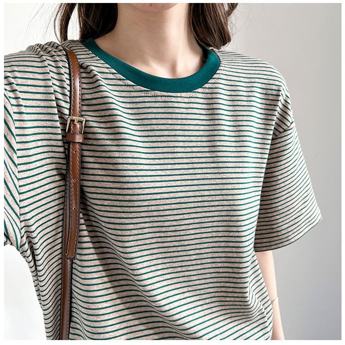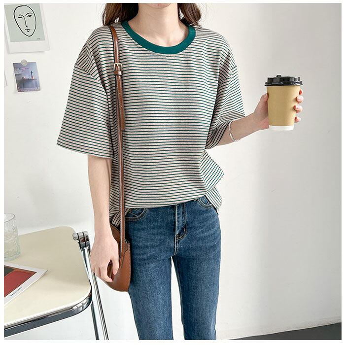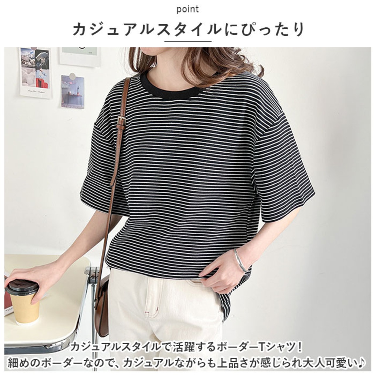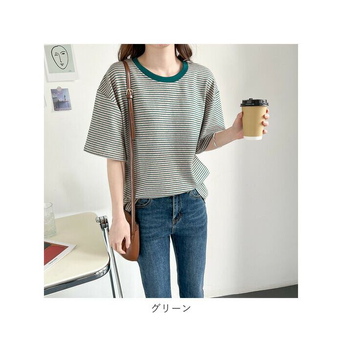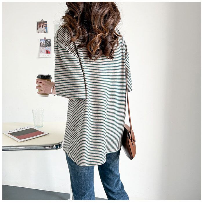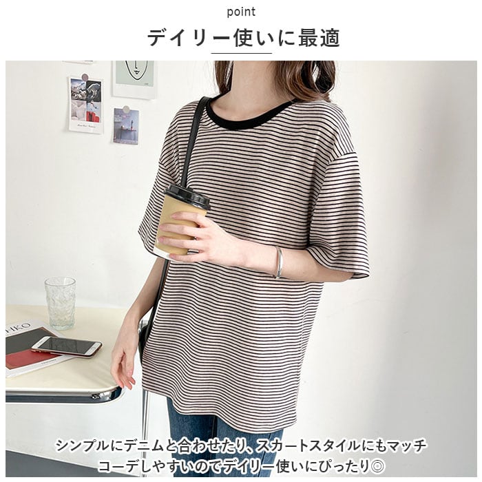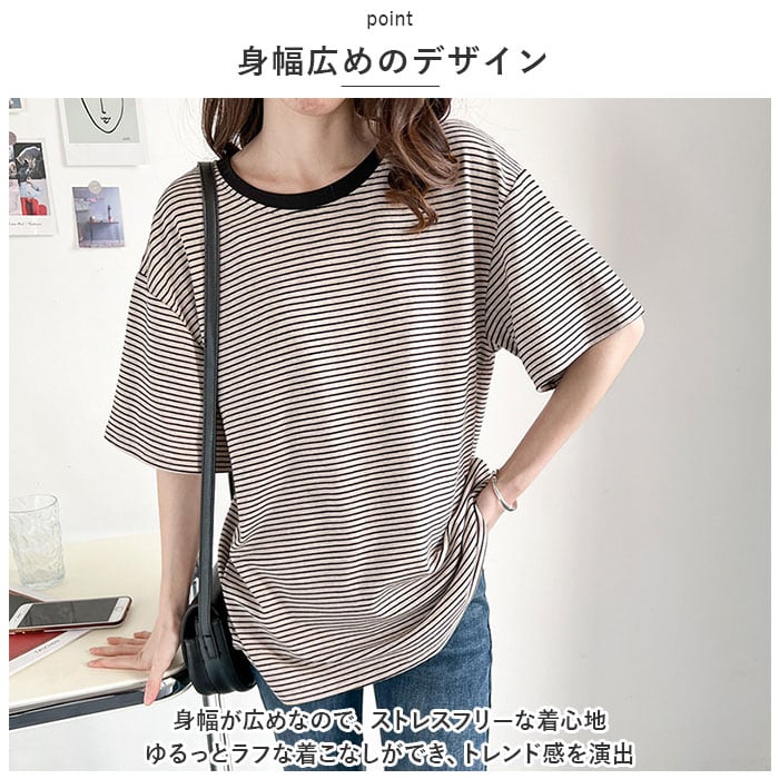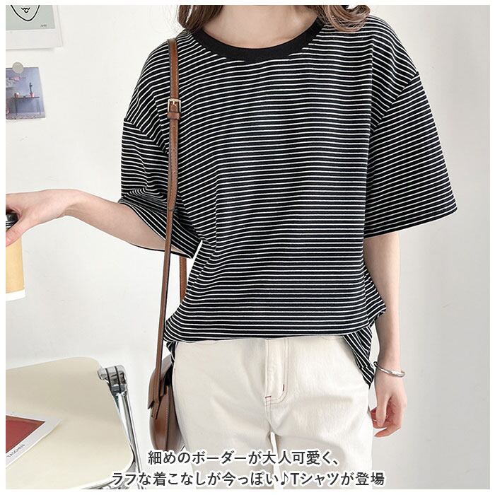 ・細めのボーダーが大人可愛く、ラフな着こなしが今っぽい♪Tシャツが登場。