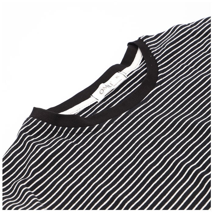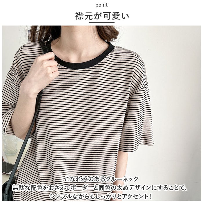・こなれ感のあるクルーネック。無駄な配色をおさえてボーダーと同色の太めデザインにすることで、シンプルながらもしっかりとアクセント!