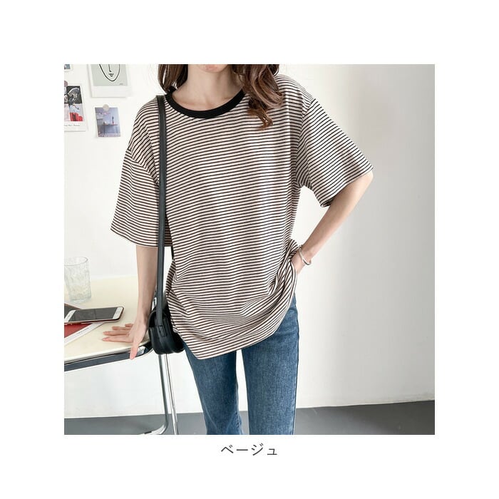・カジュアルスタイルで活躍するボーダーTシャツ!細めのボーダーなので、カジュアルながらも上品さが感じられ大人可愛い♪