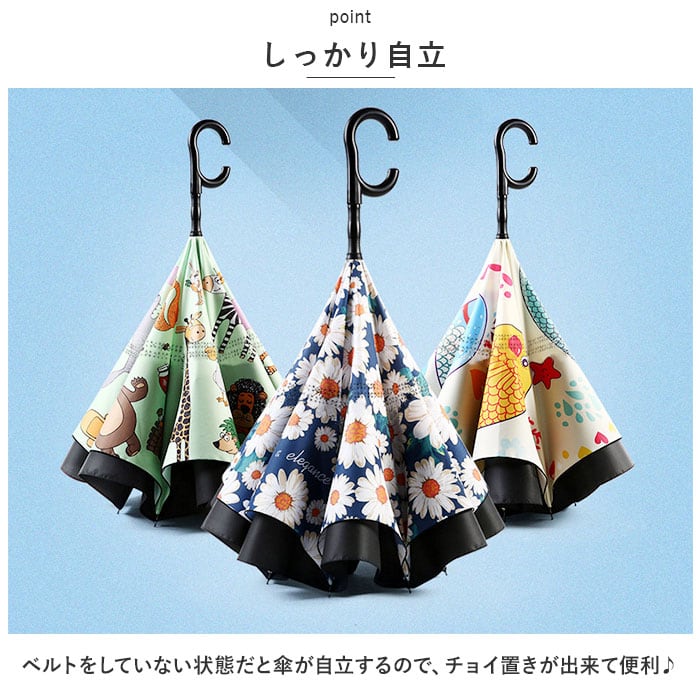 逆さ傘 ワンタッチ 通販 長傘 さかさかさ 逆さま傘 雨傘 傘 かさ カサ ジャンプ傘 レディース 耐風 丈夫 はっ水 撥水 通勤 通学 雨 梅雨 晴雨兼用 おしゃれ オシャレ かわいい カワイイ 濡れない傘 ハンズフリー