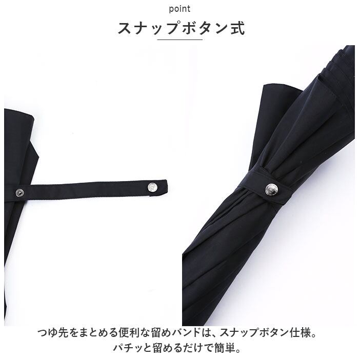 ・つゆ先をまとめる便利な留めバンドは、スナップボタン仕様。パチッと留めるだけで簡単。