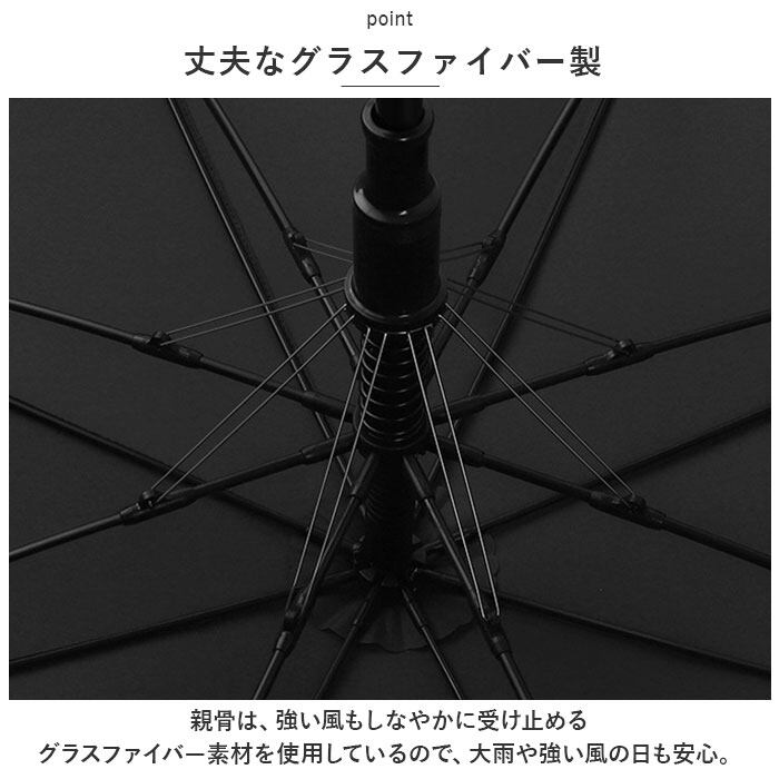 ・親骨は、強い風もしなやかに受け止めるグラスファイバー素材を使用しているので、大雨や強い風の日も安心。