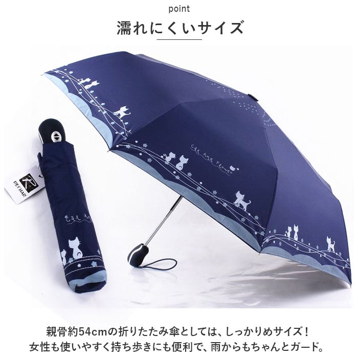・親骨約54cmの折りたたみ傘としては、しっかりめサイズ!女性も使いやすく持ち歩きにも便利で、雨からもちゃんとガード。