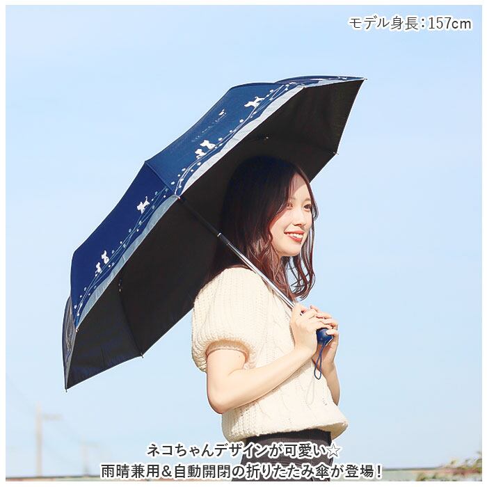 ・ネコちゃんデザインが可愛い☆雨晴兼用&自動開閉の折りたたみ傘が登場!