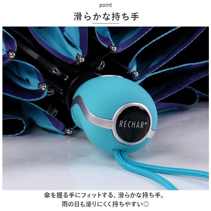 ・折りたたみ傘には珍しい、ボタンを押して開閉する、ワンタッチ自動開閉機能を搭載!片手で操作できる優れモノ!