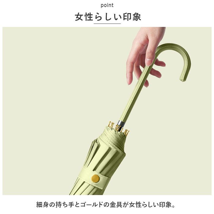 ・細身の持ち手とゴールドの金具が女性らしい印象。