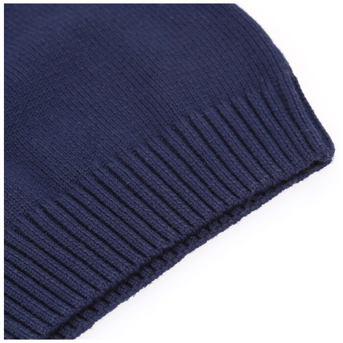 ・無地のすっきりとした編地に、襟ぐりや肩部分にラインのデザインを施した、清潔感のある仕上がり。