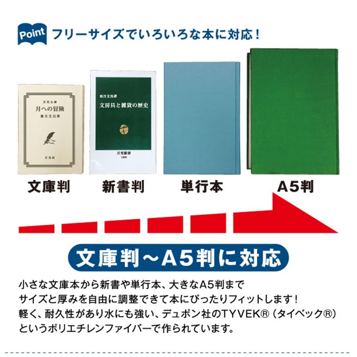 ・大切な書籍を汚れや水濡れ、日焼けなどからガード。「フリーサイズ ブックカバー」。