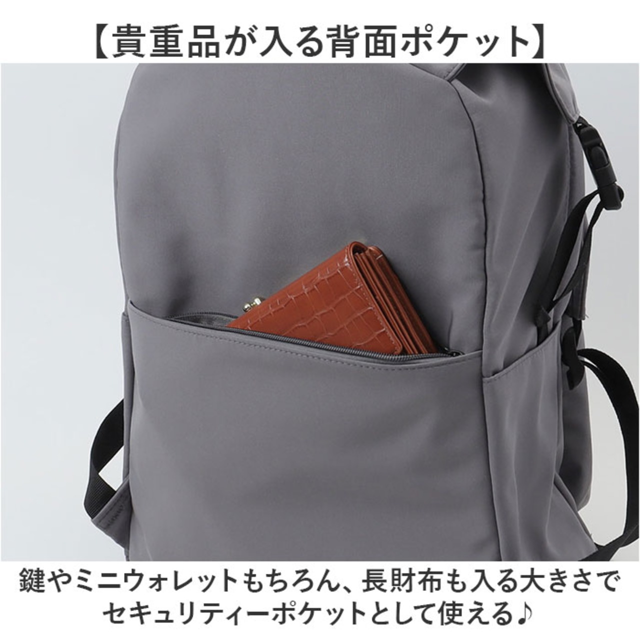【貴重品が入る背面ポケット】