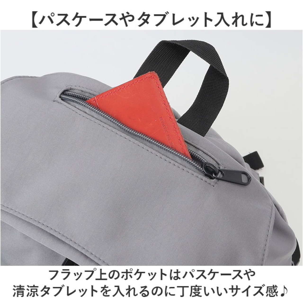 ・フラップ上のポケットはパスケースや清涼タブレットを入れるのに丁度いいサイズ感♪