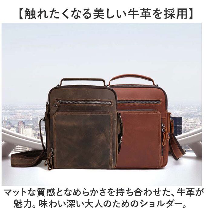・マットな質感となめらかさを持ち合わせた、牛革が魅力。味わい深い大人のためのショルダー。