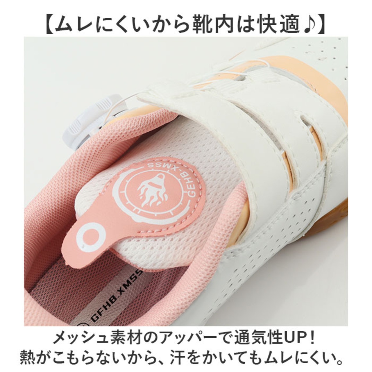 ・ダイヤル式で調節ができる、靴紐なしタイプ。カチッとワンタッチでお子様にぴったり!