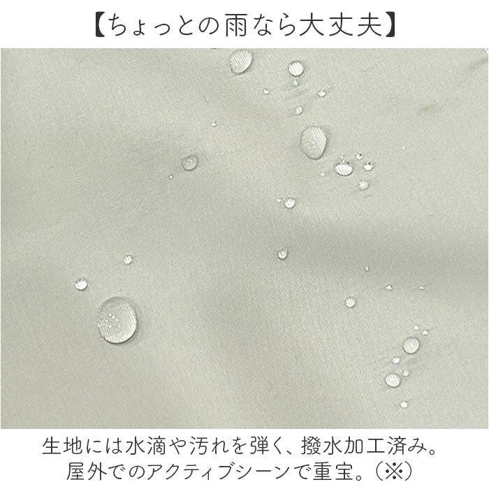 ・生地には水滴や汚れを弾く、撥水加工済み。屋外でのアクティブシーンで重宝。