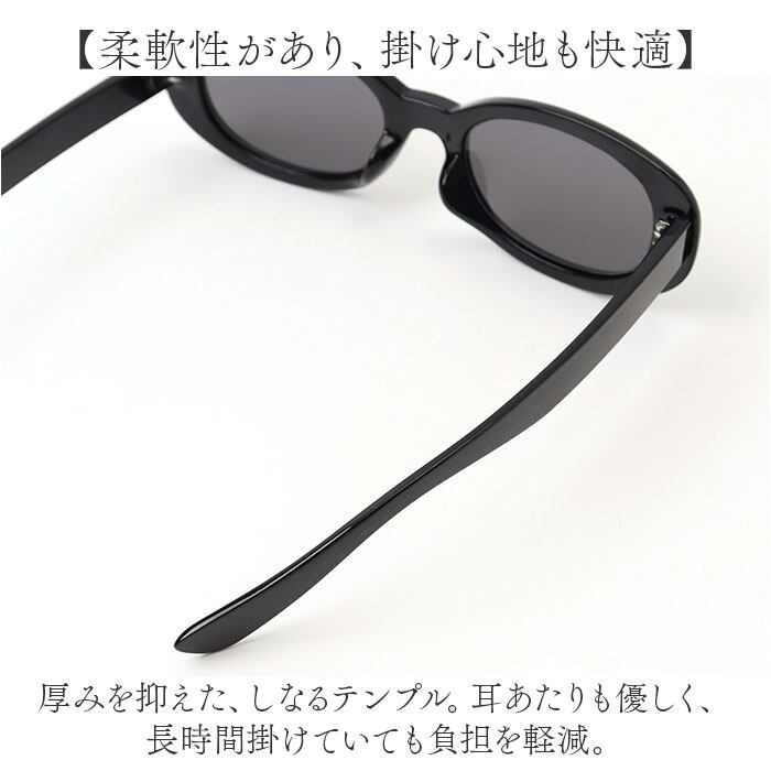 ・厚みを抑えた、しなるテンプル。耳あたりも優しく、長時間掛けていても負担を軽減。