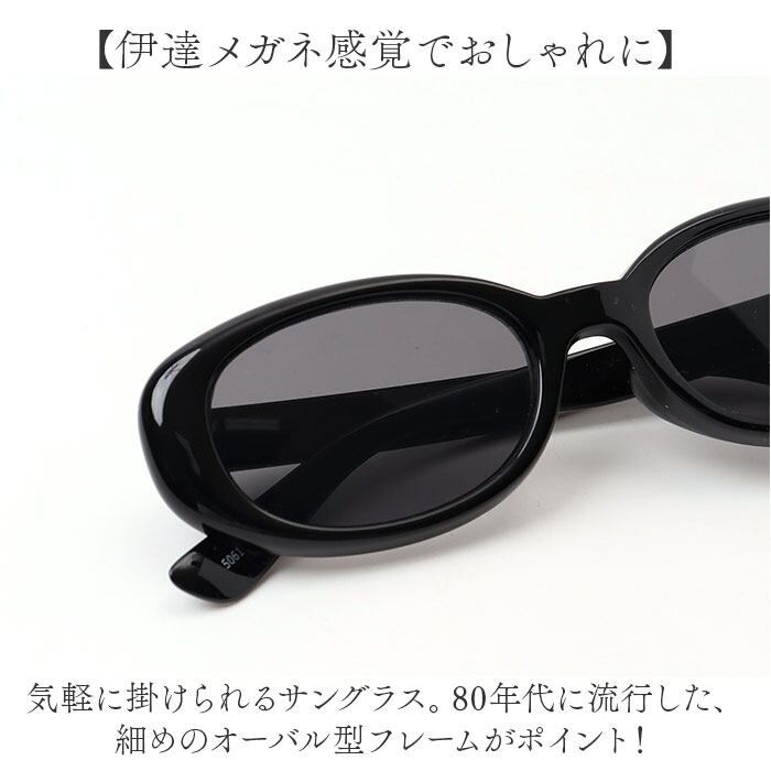 ・気軽に掛けられるサングラス。80年代に流行した、細めのオーバル型フレームがポイント!