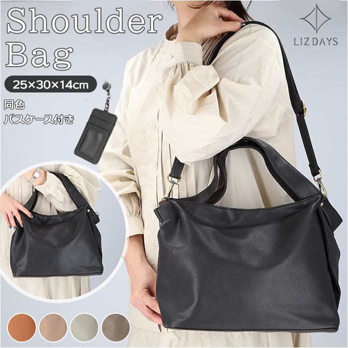 LIZDAYS リズデイズ トートバッグ lz-0003 通販 大きめ B5 大容量 通勤 通学 ショルダーバッグ 斜めがけ 2way トート ショルダー ポケット いっぱい 合皮 フェイクレザー パスケース付き リール付きパスケース 軽量 軽い 通勤バッグ お仕事バッグ おしゃれ シンプル 上品
