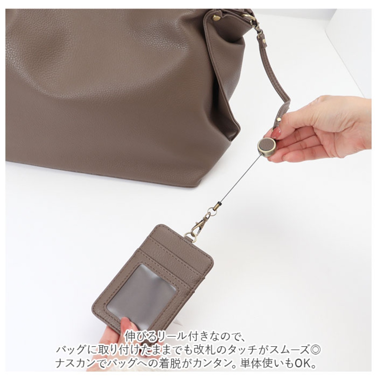 ・伸びるリール付きなので、バッグに取り付けたままでも改札のタッチがスムーズ◎