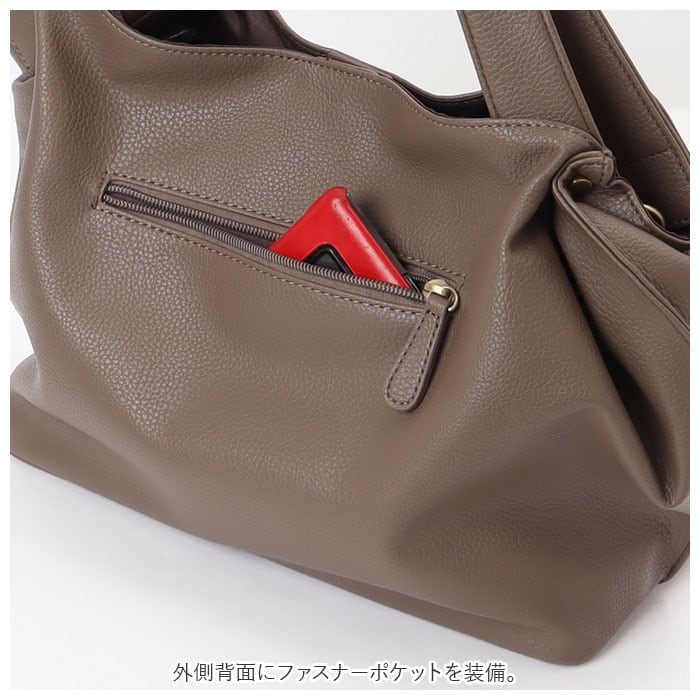 ・シボ感のあるフェイクレザー素材を使用し、上品な仕上がりに。お手入れもラクチン。