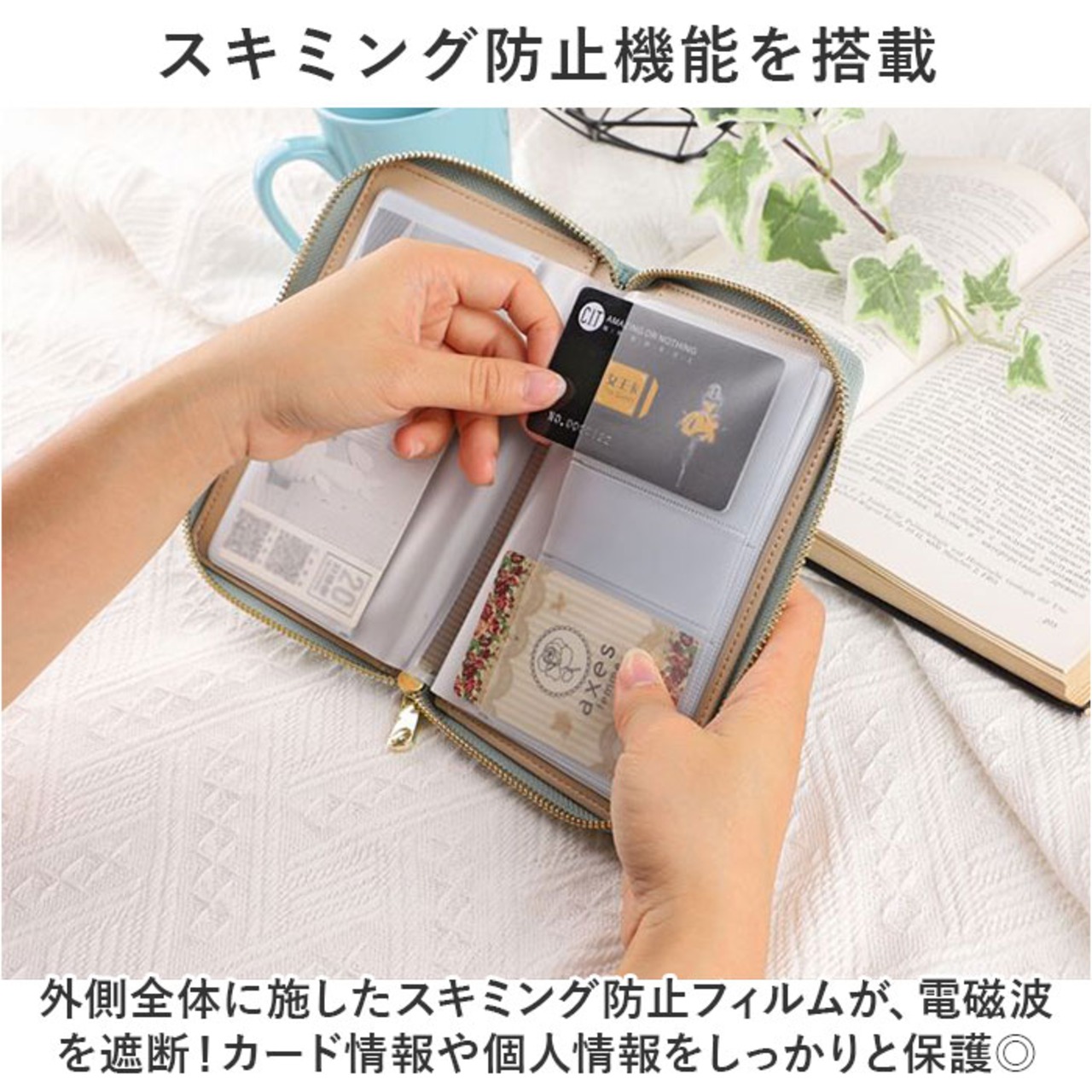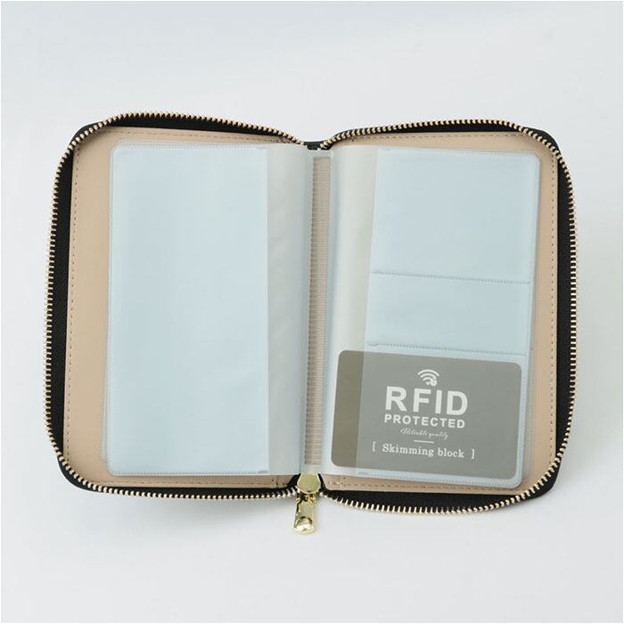 ・外側全体に施したスキミング防止フィルムが、電磁波を遮断!カード情報や個人情報をしっかりと保護◎