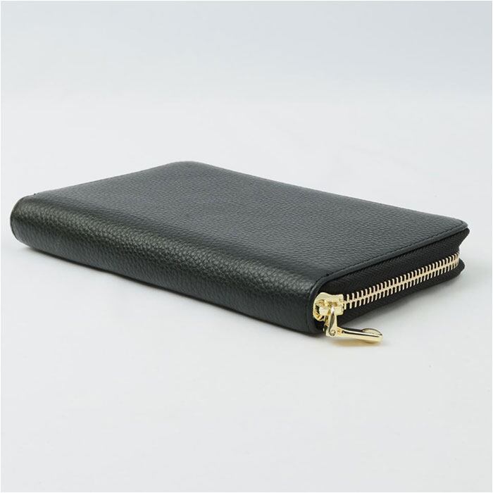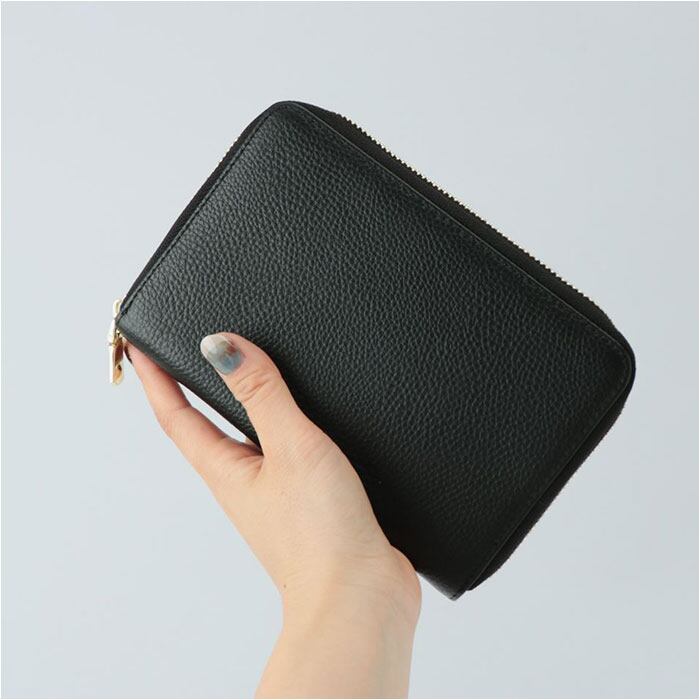 ・表面にシボ感のある牛革を使い、ゴールドパーツを合わせた落ち着きのある仕上がり。柔らかな質感で使うほどに味わいが増し、愛着が湧くアイテム。