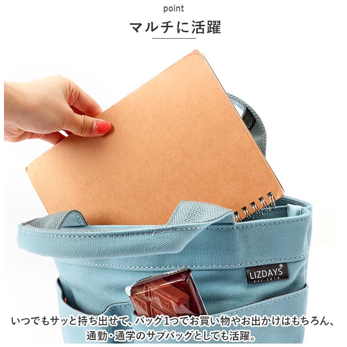 ・便利な10ポケット仕様!LIZDAYSから不揃いな荷物もすっきりまとまる、マルチ収納ミニトートバッグが新登場。