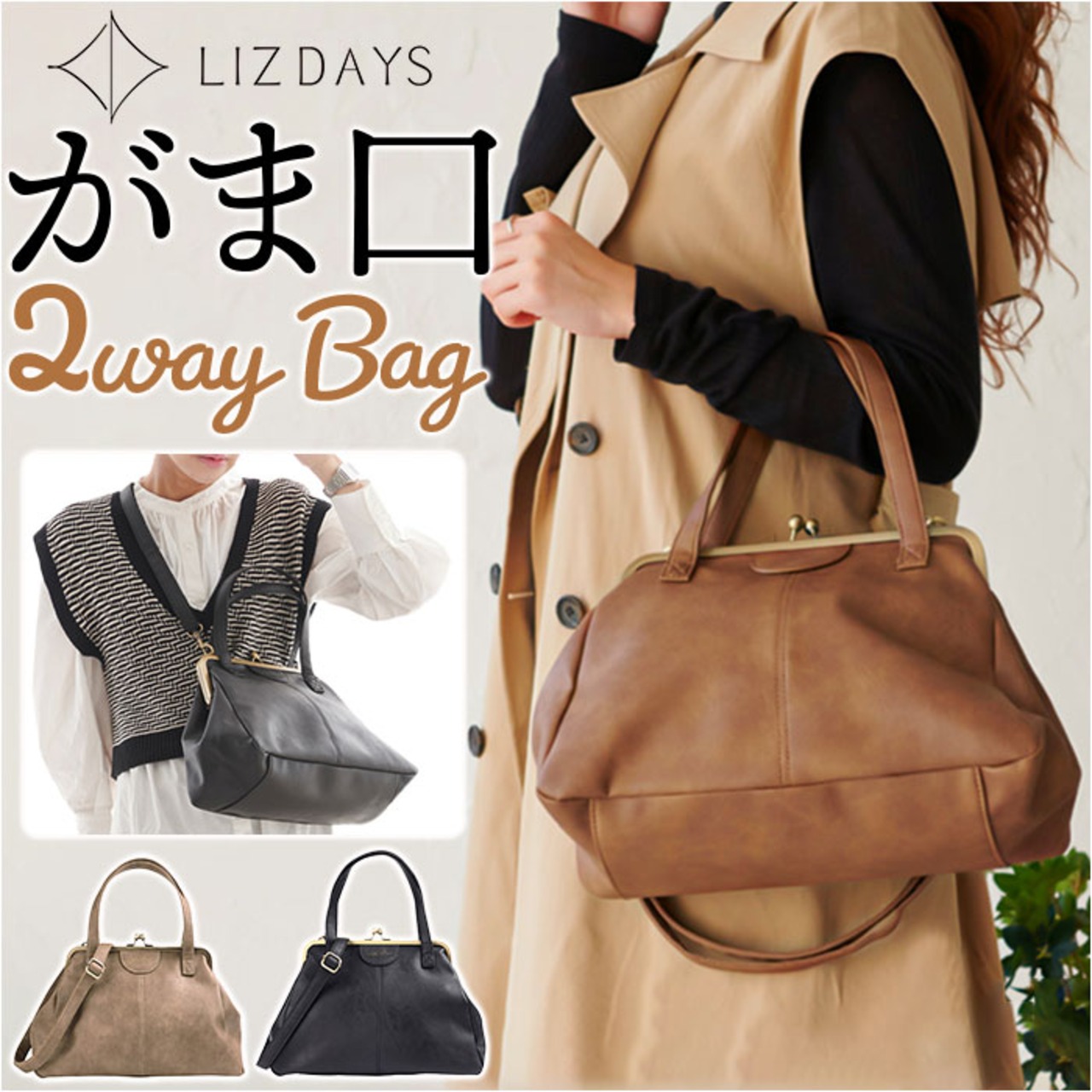 ・大人女子に人気のLIZ DAYSから、可愛さと上品さを兼ね備えた「がまぐち2WAYバッグ」が新登場